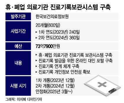 24일 머니투데이 취재에 따르면, 한국보건의료정보원은 최근 '휴·폐업 의료기관 진료기록 보관시스템' 구축 용역을 발주했다. 한국보건의료정보원은 보건복지부 산하 공공기관으로 보건·의료 정보와 관련한 사업을 지원한다.