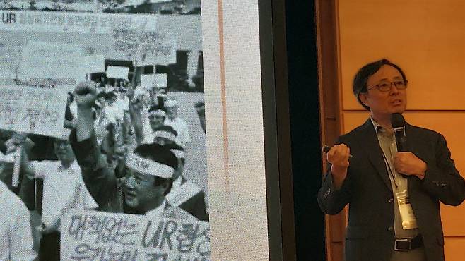 "농업에 관한 그릇된 인식은 특히 언론에 의해 확대재생산되는 측면이 강하다고 봅니다. 농업·농촌 전문기자가 전무한 게 우리 언론의 현실입니다. 농림수산부 기자실조차 농업에 관한 지식도 애정도 없는 기자들이 잠깐 머물다 가는 출입처, 회사 안에서 데스크를 보는 차장급 기자들이 바람 쐬러 나오는 곳 정도로 취급되고 있습니다.