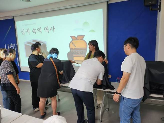 사회적경제 체험 행사는 가야유물 촉각체험과 대성동고분군 스칸디아모스 액자 만들기 체험 등으로 진행했다.