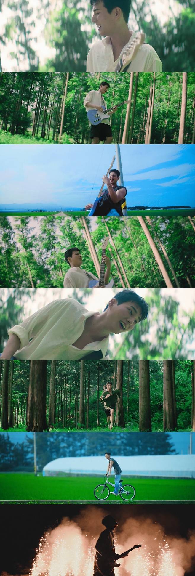 음원과 함께 공개된 뮤직비디오에는 초록빛이 반짝이는 숲길을 거침없이 달리고, 파란 하늘을 배경 삼아 일렉 기타를 연주하는 영케이의 모습이 담겼다. 여름의 청춘을 의인화한 듯한 찬란한 비주얼이 보는 이들의 마음까지 시원하게 물들인다.