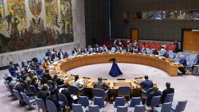 북한이 '군사 정찰 위성'이라고 주장하는 우주발사체 문제를 논의하기 위해 25일(현지 시간) 열린 유엔 안전보장이사회 회의.