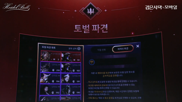 토벌 콘텐츠를 서브 캐릭터로 플레이할 수 있도록 '토벌 파견' 시스템을 8월 29일부터 도입한다. 직접 플레이하지 않고 보상을 받을 수 있다. 경험치는 서브 캐릭터로 받고, 보상은 메인 캐릭터에 지급되어 편리함을 더욱 높였다. 전투력을 공유하는 '캐릭터 전이'와 함께 활용 가능하다.