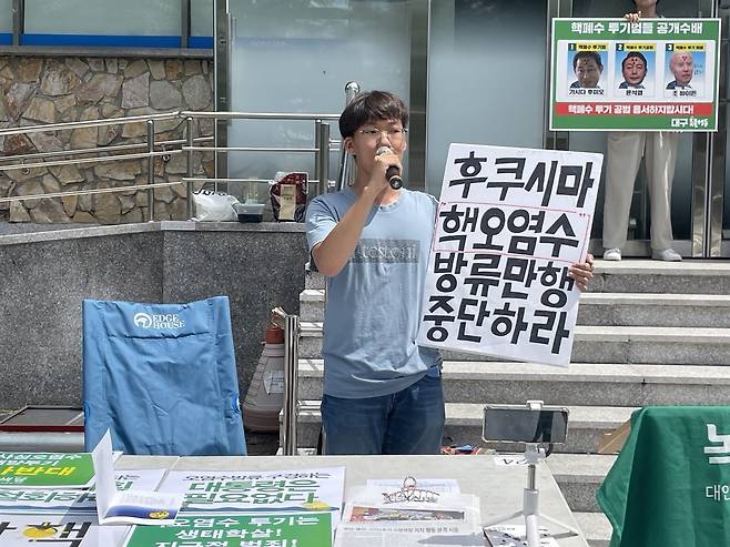 오후 농성을 준비하던 정의당 대구시당 한민정 위원장은 "국민의 80%가 넘는 사람들이 반대하고 있지 않나. 그런데 우리나라 대통령이 국민들 뜻을 저버리고, 일본의 편을 든다는 것은 대통령 자격이 없다고 생각한다. 앞으로 남은 임기 동안 국민들이 반드시 그 책임을 물을 것이라는 걸 윤 대통령이 분명히 인식했으면 좋겠다. 지금이라도 늦지 않았으니 일본의 핵 오염수 투기에 대해서 반대 입장을 표명하고, 시민들의 걱정과 우려에 더 관심을 가져주시길 간절하게 촉구한다"라고 했다.