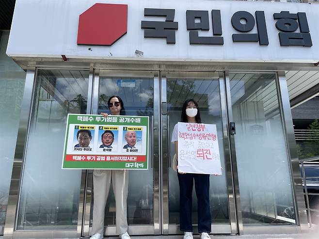 대구지역 시민단체들이 핵 오염수 해양투기 중단과 윤석열 정부 규탄을 외치며, 국민의 힘 대구시당 앞에서 48시간 긴급 철야 농성을 진행했다. 농성은 지난 25일 오전 9시부터 진행됐다.