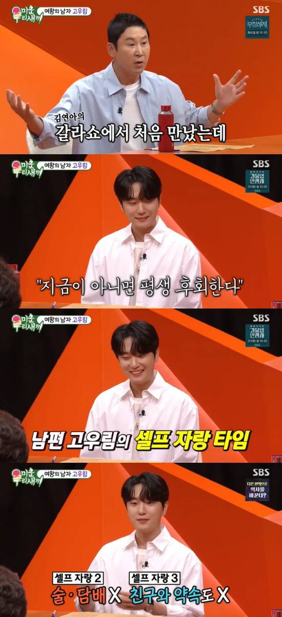 27일 방송된 SBS '미운 우리 새끼'(이하 '미우새')에서는 고우림이 스페셜 게스트로 출연한 가운데 러브스토리를 밝힌 장면이 전파를 탔다.