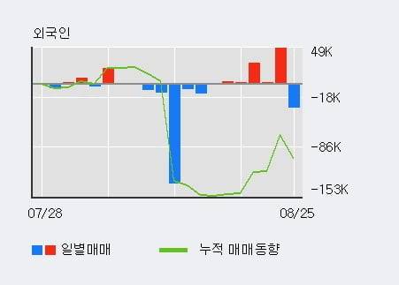 지난 한달을 기준으로 보면 기관이 17.1만주를 순매수한 반면, 외국인은 10.1만주를 순매도했고, 개인들도 3.6만주를 순매도했다. 같은 기간 이 종목의 거래비중은 외국인과 개인이 각각 20.0%, 72.2%로 비중이 높다.