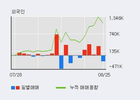 지난 한달을 기준으로 보면 외국인이 113.1만주를 순매수했고, 기관도 111.8만주를 순매수했다. 반면 개인들은 235.3만주를 순매도한 것으로 나타났다. 같은 기간 이 종목의 거래비중은 외국인과 개인이 각각 15.7%, 78.2%로 비중이 높다.