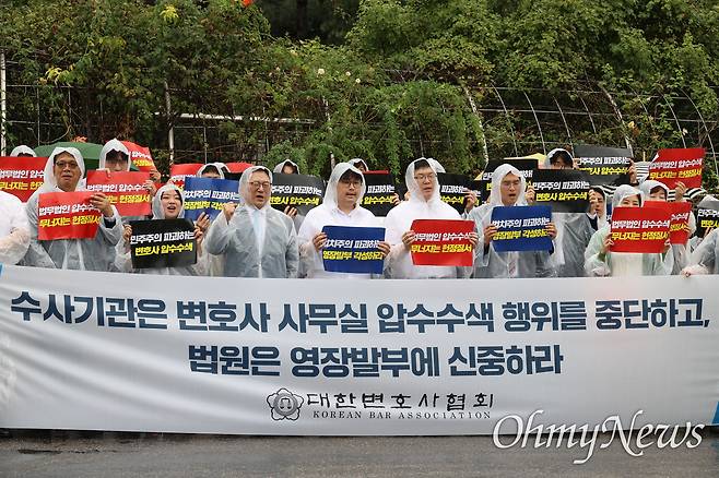 [오마이포토] 거리로 나선 대한변협 "변호사 사무실 압수수색 중단하라"