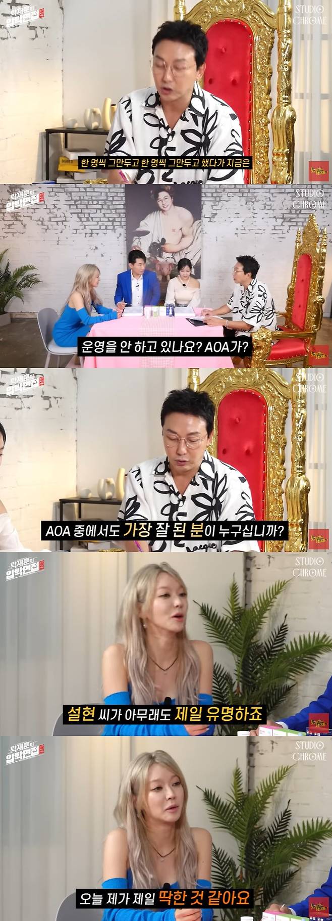 이에 탁재훈은 "한 명씩 그만두고 하다가 지금은 AOA가 운영을 안 하고 있냐"고 물었고 초아는 고개를 끄덕였다.