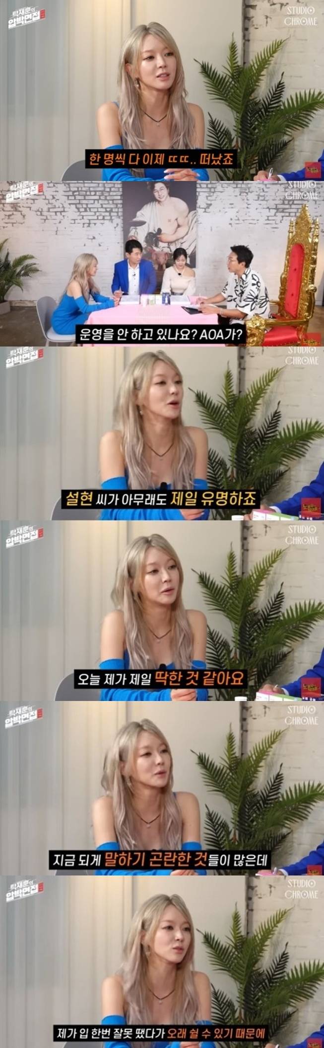 "범인이 본인이냐. 아닌데 그럼 왜 그런 거냐. 한 명씩 그만 두고 한 명씩 그만 두고 했다가, 지금은 AOA가 운영을 안 하고 있냐"라는 탁재훈의 질문에는 고개를 끄덕이는 것으로 답했다.