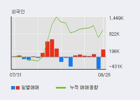 ◆ 주체별 매매동향- 전일 외국인 대량 순매수지난 한달을 기준으로 보면 외국인이 96.3만주를 순매수했고, 기관도 12.8만주를 순매수했다.
