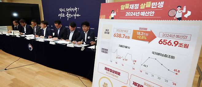 29일 기획재정부는 '알뜰재정, 살뜰민생 2024년 예산안' 자료를 통해 "모든 재정사업의 타당성과 효과성을 원점에서 재검토하여 재정 누수요인을 차단"이라면서 "약 23조 원 규모의 구조조정을 단행"하겠다는 뜻을 밝혔다.