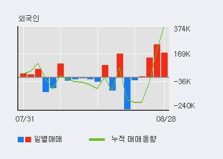 지난 한달을 기준으로 보면 외국인이 37.3만주를 순매수했고, 기관도 144.0만주를 순매수했다. 반면 개인들은 146.0만주를 순매도한 것으로 나타났다. 같은 기간 이 종목의 거래비중은 외국인과 개인이 각각 14.0%, 81.1%로 비중이 높다.