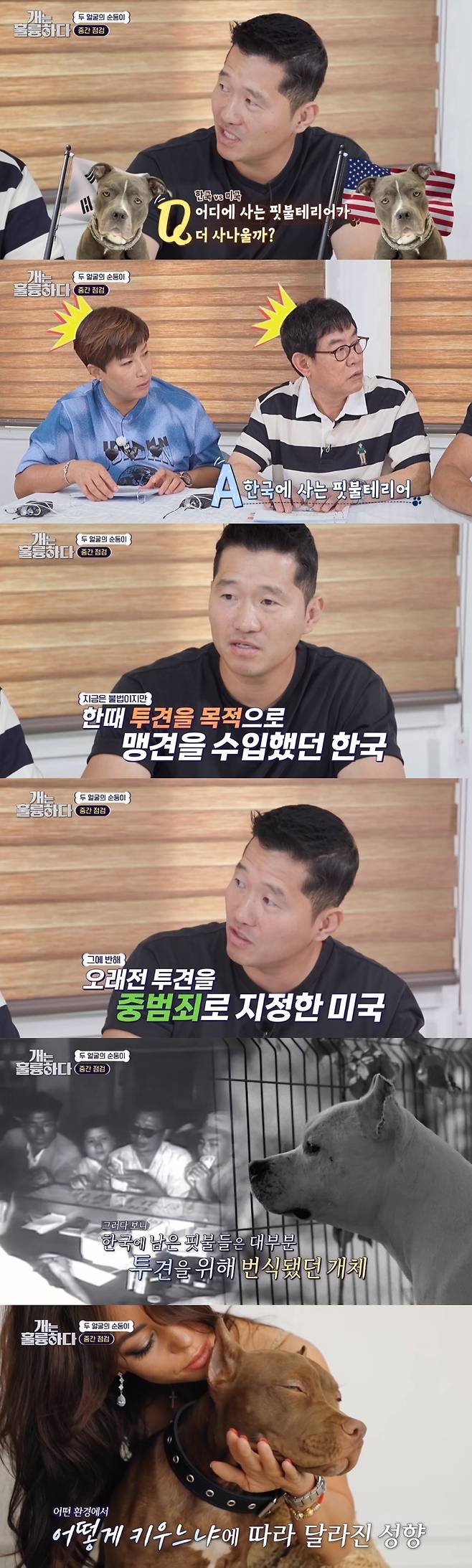 이어 강형욱은 "한국이 더 사납다. 한국은 오랜 시간 핏불을 투견 목적으로만 수입했기 때문이다. 미국의 핏불은 반려견으로 100년, 200년 기른 아이들이다. 기질이 다르다"라고 했다.