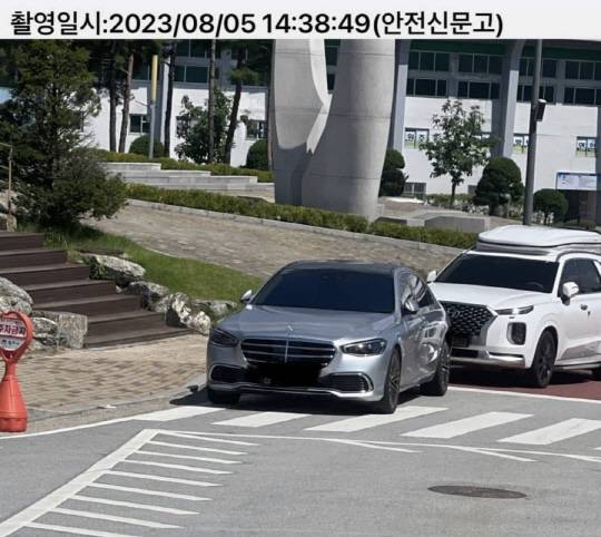 해당 게시글의 작성자는 강원도 원주에 소재한 한 체육공원에서 일어난 일에 대해 "더운날 일부러 이 차들 찍는다고 땀흘리며 신고했더니 이런 답변이었다"라고 소개했다.