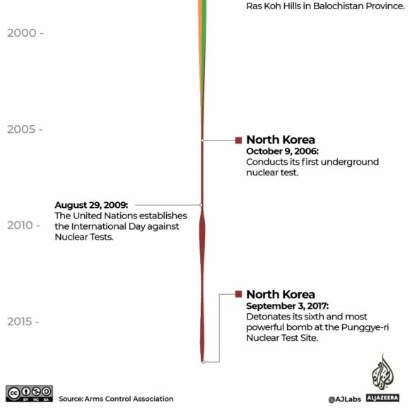 특히 북한은 21세기 들어 유일하게 핵실험을 벌인 나라이다. 2006년 10월 9일 1차 핵실험을 강행한 이후 여섯 차례나 핵실험을 했고, 조만간 7차 핵실험을 할 가능성이 거론되고 있다. 북한의 핵무기 개발은 이란 등 비밀 핵개발 의혹을 받는 나라들에 큰 영향을 줄 수 있는 사안으로, 미국을 비롯한 국제사회는 지속적으로 북한을 상대로 비핵화 협상을 압박하고 있다.