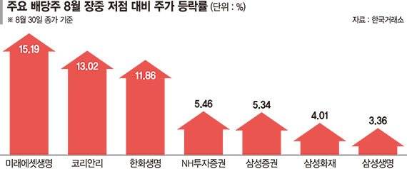 통상 배당주는 연말이 다가오면서 주목을 받지만 올해는 증시 변동성이 확대됨에 따라 일찌감치 수급이 관심을 보이고 있다는 분석이다.