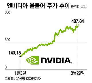 엔비디아는 올해 실적이 급증하며 이런 우려를 불식시켜 왔다. 엔비디아는 올들어 주가가 3배 이상 뛰었지만 매출액과 순이익이 빠르게 늘며 밸류에이션은 올 1분기보다 지금이 더 낮아졌다.