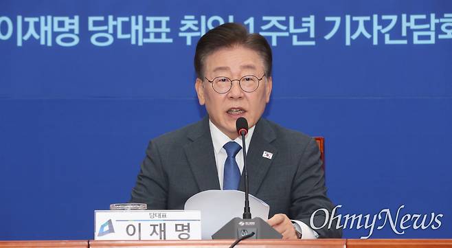 | ▲ 이재명 더불어민주당 대표가 31일 서울 여의도 국회에서 당대표 취임 1주년 기자간담회를 하고 있다. |