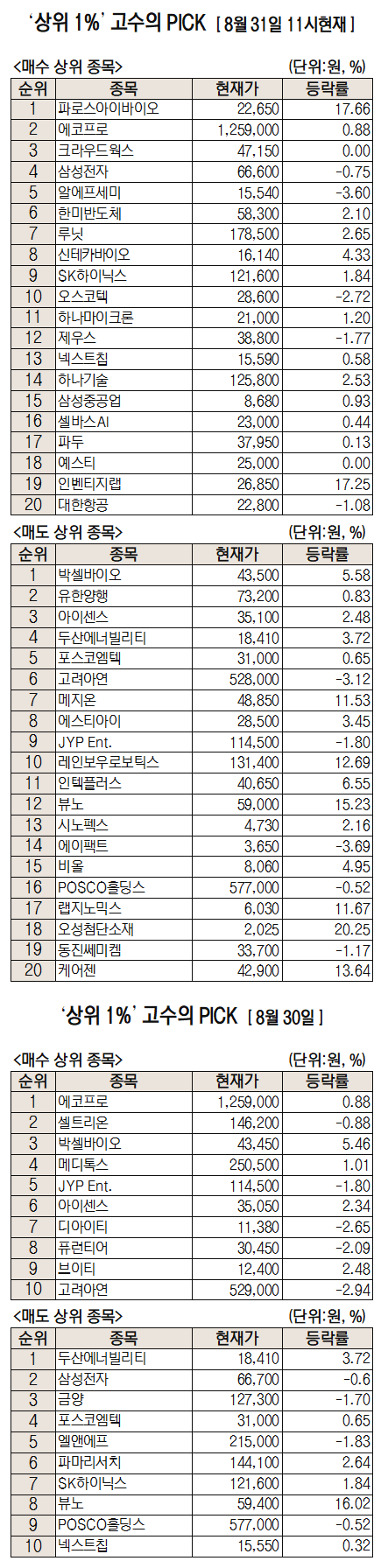 이날 미래에셋엠클럽에 따르면 미래에셋증권 주식 거래 고객 중 최근 1개월 간 투자수익률 상위 1%에 해당하는 '주식 초고수'들이 오전 11시까지 가장 많이 사들인 종목은 파로스아이바이오로 집계됐다.