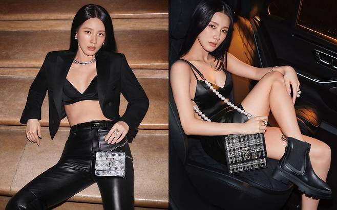또 다른 사진에서는 검정색 브라톱에 가죽팬츠를 매치해 시크한 매력을 과시하기도 했다.