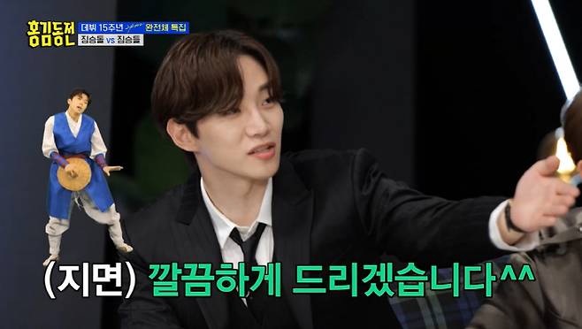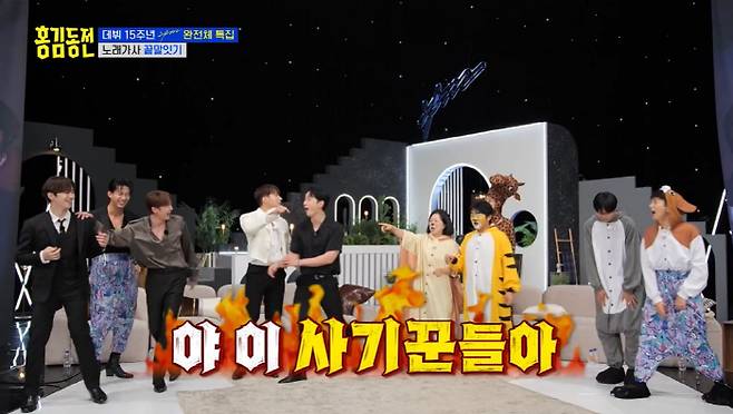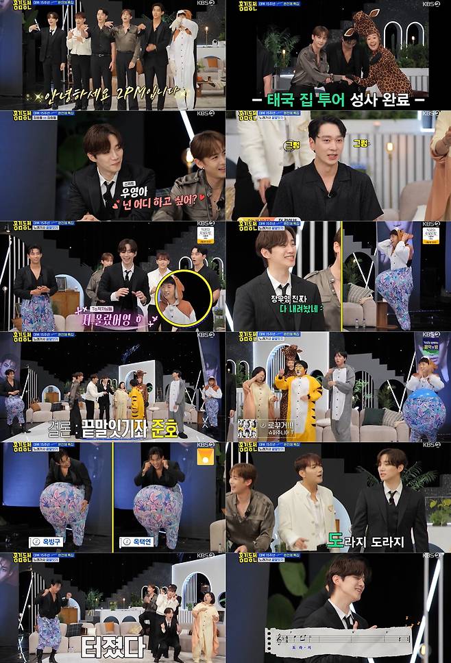 [스포츠조선닷컴 정안지 기자]'홍김동전'에 데뷔 15주년을 맞이한 '2PM'의 준케이, 닉쿤, 택연, 찬성, 이준호가 함께 해 '홍김동전'의 우영까지 2PM 완전체 파워를 제대로 과시했다.