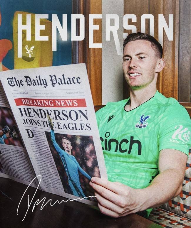 이와 동시에 팰리스도 구단 홈페이지를 통해 "팰리스는 맨유의 골키퍼 헨더슨을 영입하게 된 것을 기쁘게 생각한다. 그는 5년 계약을 체결했다"며 영입을 공식 발표했다. 유럽 축구 소식에 능통한 파브리시오 로마노 기자는 "이적료는 1,500만 유로(약 215억 원)이며, 에드온 500만 유로(약 70억 원)이 포함됐다"고 알렸다.
