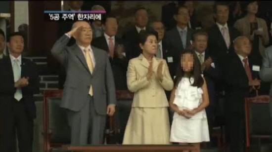 | ▲ 전두환 전 대통령이 육사발전기금 200억원 달성을 기념해 열린 행사에서 사열을 하고 있다. |