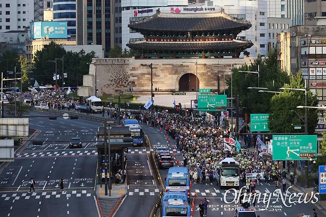 [오마이포토] "가자! 대통령실로" 오염수 방류 용인 윤석열정권 규탄 행진