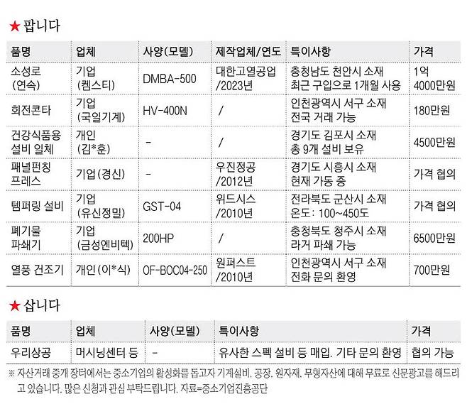 이 밖에 다양한 직거래 및 유관기관 매각·매입 기계·설비 정보를 찾고자 한다면, 중소벤처기업진흥공단이 운영하는 중소벤처기업 자산거래중개장터 포털사이트에 접속해 회원 가입 후 검색하거나 전화를 통해 상담할 수 있다.