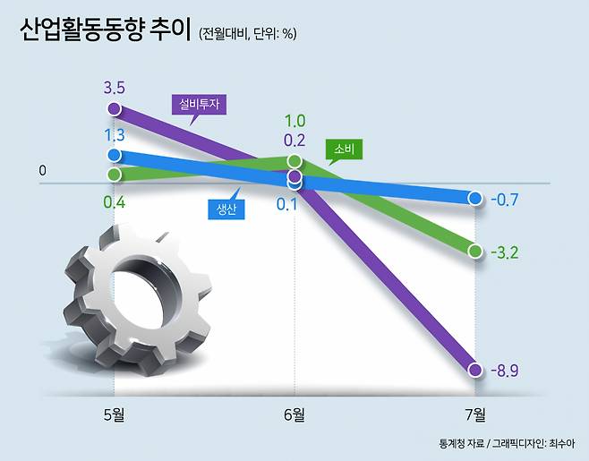 3일 통계청에 따르면 하반기 첫 달인 7월 소비와 투자는 큰 폭의 마이너스를 기록했다.