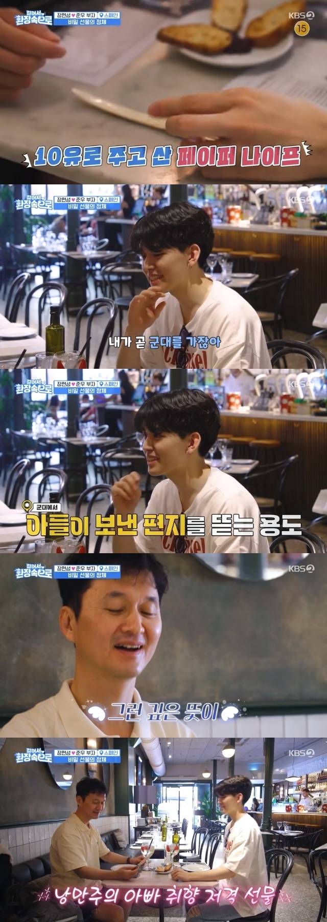 이후 식당에 간 부자는 음식이 나오기 전 선물 교환 시간을 가졌다. 장현성이 준비한 선물은 리 릿나워와 쳇 베이커의 CD였다. 장현성이 가장 좋아하는 재즈 뮤지션이라고. 젊은 날 자신이 좋아했던 감성을 나누고 싶은 아빠의 마음이었다.