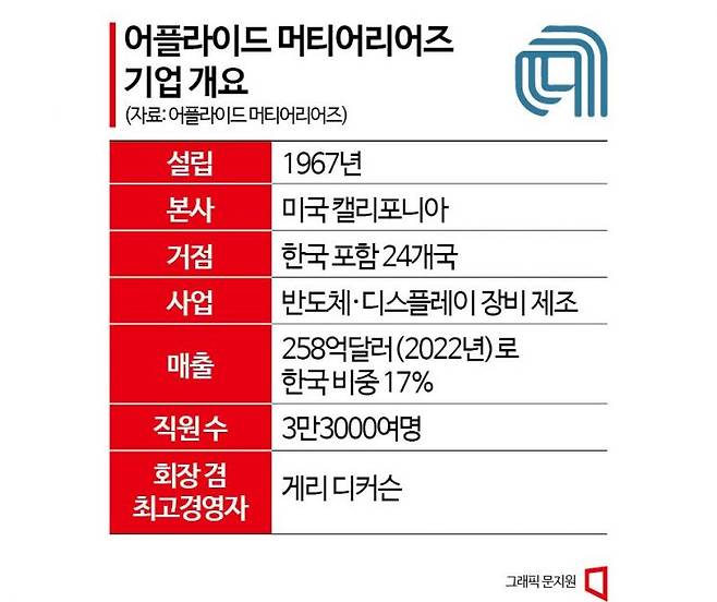 어플라이드 머티어리얼즈는 세계 반도체 장비 시장에서 1위 사업자다. 시장 점유율은 22.5%(2021년 기준)로 반도체 전공정(웨이퍼에서 반도체 칩을 생산하는 과정) 분야에서 다양한 장비를 선보이며 세계 주요 반도체 기업들을 고객사로 두고 있다. 1967년 미국에서 회사가 설립된 뒤 반도체뿐 아니라 디스플레이 영역까지 사업을 확대해 현재 세계 24개국 120곳 넘는 도시에 거점을 둔 글로벌 기업이 됐다.