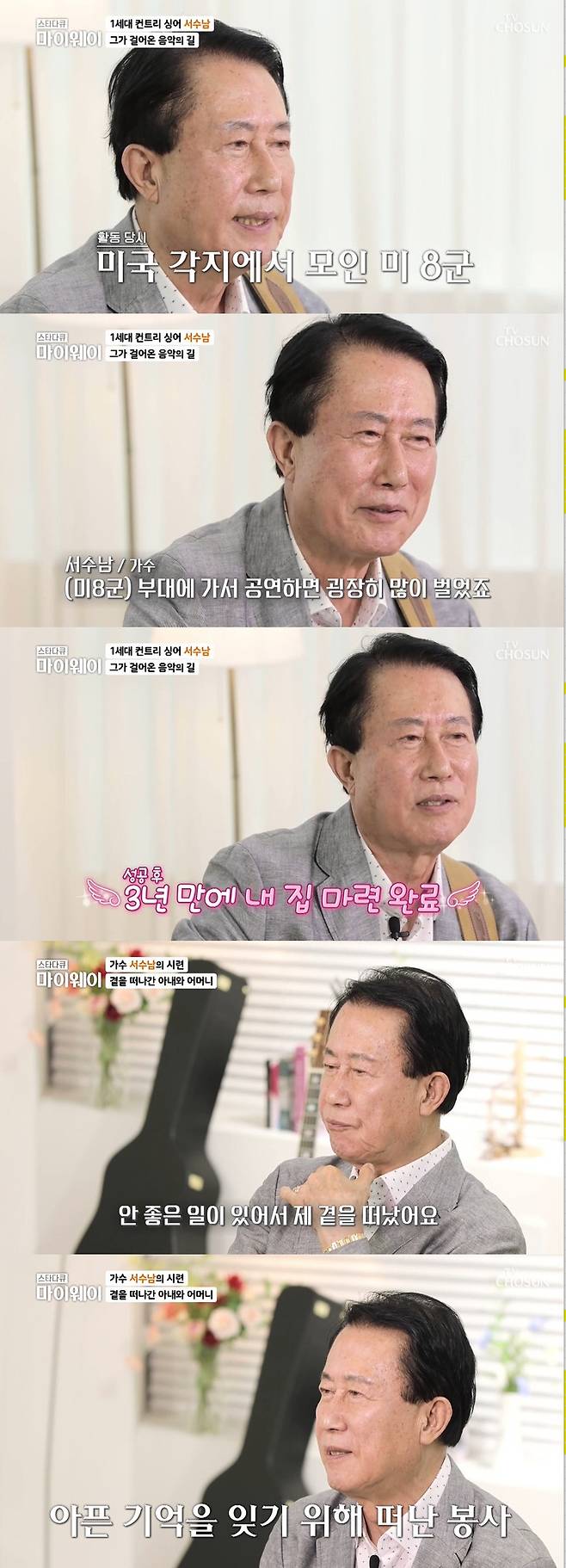 당시에는 비주류였던 포크, 컨트리송에 빠졌던 서수남. 서수남은 "우리나라에 주둔 미군 병사들이 미국 전역에서 오신 분 아니냐. 컨트리 음악이 굉장히 보급됐다. 우리는 라디오를 듣고 컨트리 음악에 심취하고 음악을 배우기 위해 가사를 찾고 무대에서 부르게 되면서 컨트리 음악 1세대가 됐다"고 밝혔다.