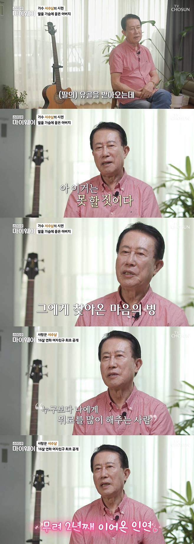 서수남은 "누구보다 나에게 위로를 많이 해주는 사람이다. 즐거움을 같이 나눌 수 있는 상대가 있는 게 확실히 좋겠다 싶어 만나며 대화를 많이 나눈다"고 여자친구에 대한 애정을 드러냈다.