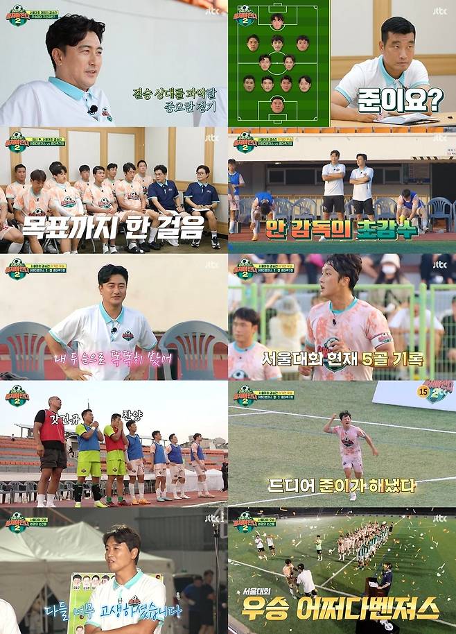 3일 방송된 JTBC ‘뭉쳐야 찬다2’에서는 ‘JTBC배 서울대회’ 결승전이 손에 땀을 쥐게 했다. ‘어쩌다벤져스’는 ‘중마축구회’를 상대로 3 대 2로 승리하며 우승컵을 획득, 전국을 환호로 들썩이게 했다.