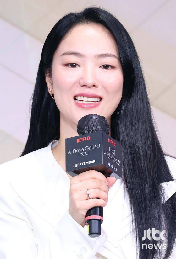 전여빈은 4일 오전 서울 중구 앰배서더 서울 풀만에서 진행된 넷플릭스 새 시리즈 '너의 시간 속으로' 제작발표회에서 "강훈이 비타민 역할을 했다. 못지않게 안효섭이 제2의 비타민이 됐다"고 말했다.