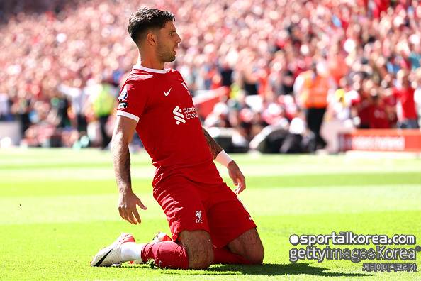 리버풀 데뷔골을 넣은 소보슬러이는 무릎 슬라이딩을 하며 기뻐했다. 득점만 기록한 것이 아니다. 축구 통계 업체 ‘풋몹’에 따르면 소보슬러이는 오른쪽 미드필더로 출전해 패스 성공률 91%(51/56)를 기록했다. 크로스는 4번 중 3번이 연결됐다. 기회 창출도 2번 했다.