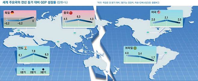 한국·중국 경제 나란히 죽쑬 때…美·인도 폭풍성장, 무슨 차이?