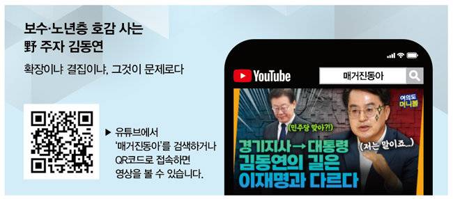 김 지사는 대선 출마 여부를 묻는 질문에 "(제가 아니라) 국민께서 결정하실 일"(동아일보 인터뷰)이라고 답했다. 데이터만 보면, 국민은 그에게 '양당 구조'에 얽매이지 않는 정치를 원하는 것처럼 보인다. 이에 반응하면서도 진영을 결집해야 하니 김 지사 처지에서는 난도가 지극히 높다. 보수·노년층의 호감을 사는 유일한 야당 대권주자가 고차방정식 앞에 놓였다.
