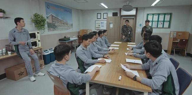 다목적실에 모인 김상훈, 강찬석, 김경태, 최병남 등의 모습도 흥미롭다. 2중대 상병 이상의 계급 병사들만 집합 시킨 이유에도 궁금증이 쏠린다. 갑작스러운 집합에 어리둥절한 이들을 더욱 놀라게 만든 것은 부소대장 임성민(남민우 분)의 한 마디. 자신의 앞에 놓인 종이에 눈살을 찌푸린 김상훈은 불편한 기색이 역력하다. 중대원들의 동요하는 눈빛에서 심상치 않은 사건을 짐작게 한다.