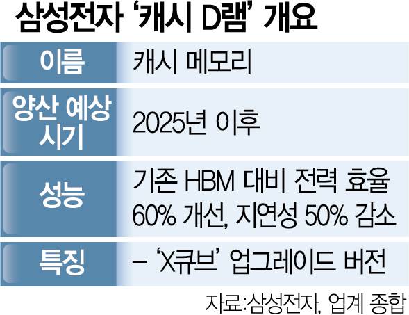 캐시 D램은 최근 업계를 강타한 HBM를 한 단계 업그레이드한 것이다. HBM은 여러 개의 D램을 한 개의 칩처럼 수직으로 쌓아 고용량을 구현하는 반면 캐시 D램은 단 한 개의 칩으로 HBM과 맞먹는 정보를 저장할 수 있다. 이르면 2025년 양산을 목표로 개발 중인 것으로 알려졌다.