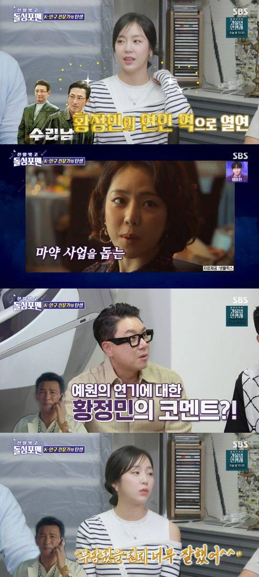 '돌싱포맨'에서 예원이 '수리남'에 함께 출연한 배우 황정민의 칭찬을 밝혔다.