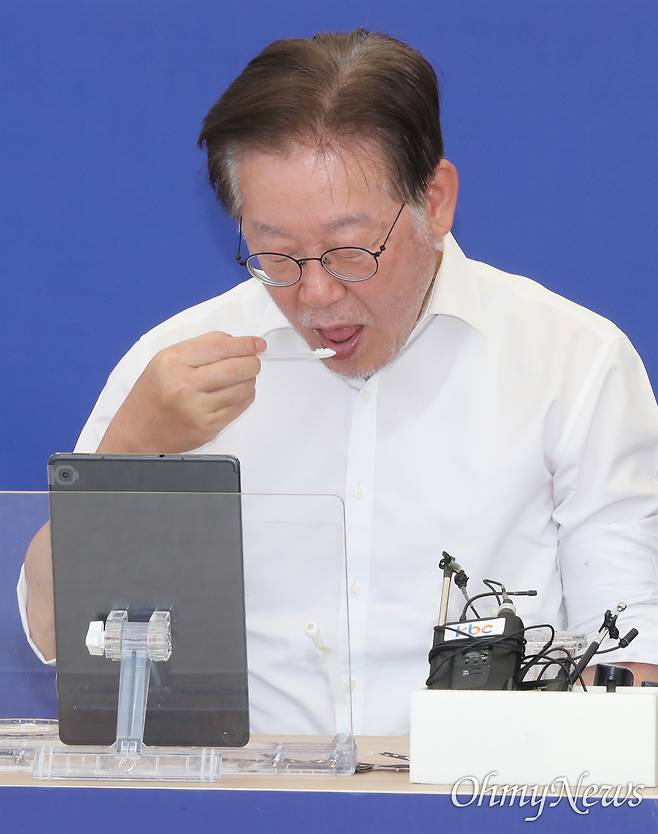 [오마이포토] 소금으로 버티는 이재명 대표