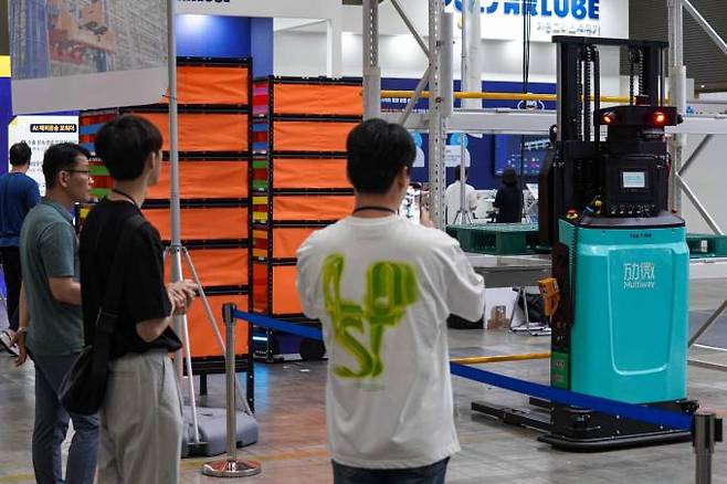 6일 오후 경기 고양시 킨텍스에서 열린 '제3회 유통·물류 및 공급망관리 산업전(SCM FAIR 2023)'을 찾은 관람객들이 전시를 둘러보고 있다.