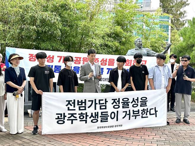 | ▲ 호남대안포럼이 '정율성 역사공원 반대' 기자회견을 진행하고 있다. |
