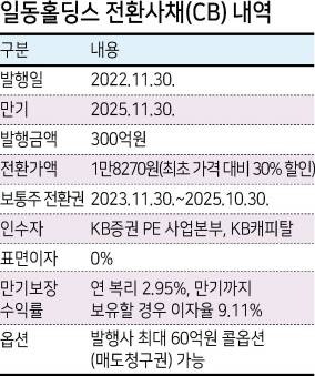 일동홀딩스가 모처럼 주가 상승 모멘텀을 만들면서 KB증권 PE의 전환사채(CB) 역시 관심거리다.