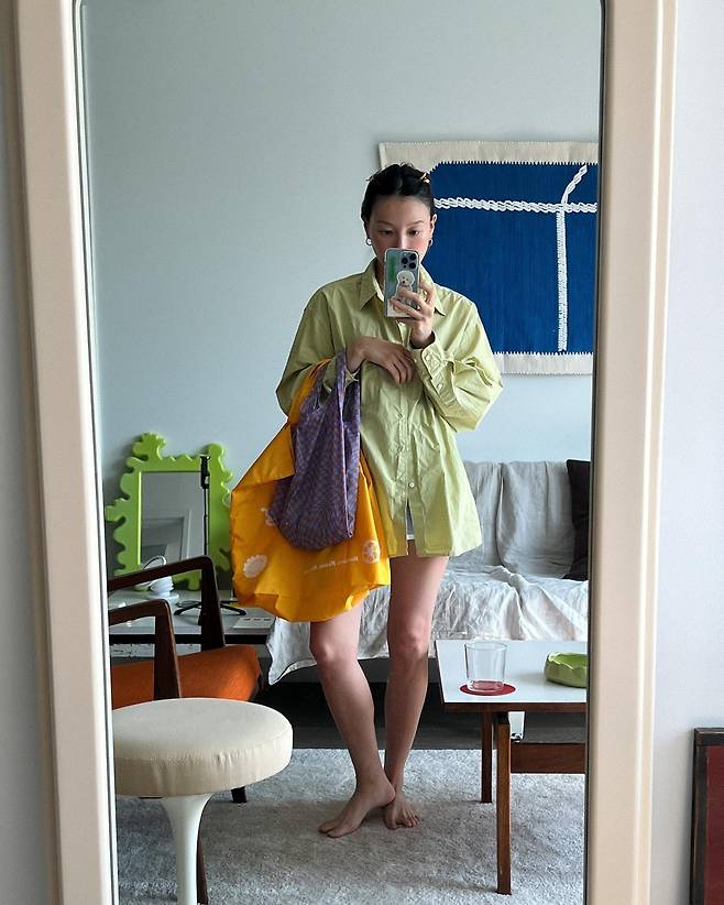 제가 만든 리빙 아이템 중에 정말 마음에 쏙 드는 아이템은 전신 거울이에요. 매일 아침 거울 앞에서 착장을 체크하는데요. 거울을 통해 거실 풍경이 반사되어 사진이 참 잘 나와요. 데일리 룩 #OOTD도 더 스타일리시하게 보여주죠.