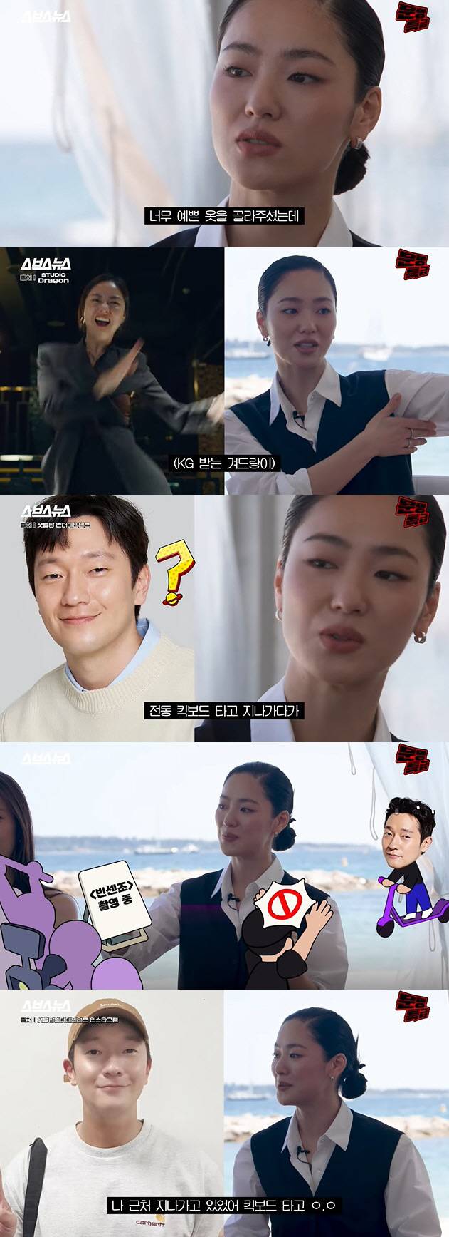 전여빈은 "이날 촬영을 강남에서 했다. 손석구 오빠가 주변에 전동 킥보드 타고 지나가다가 촬영을 하고 있어 둘러봤다더라. '빈센조'라 써있어서 둘러보려 하다가 조연출님이 막았다더라. 그러다 '어? 석구형? 들어가세요' (했다)"라며 "춤 추고 있는데 '여빈아' 해서 뭐냐 했더니 '나 근처 지나가고 있었다. 죽인다"고 응원해주고 지나갔다"고 밝혀 웃음을 안겼다. 손석구와 전여빈은 JTBC '멜로가 체질'에 함께 출연했던 사이.