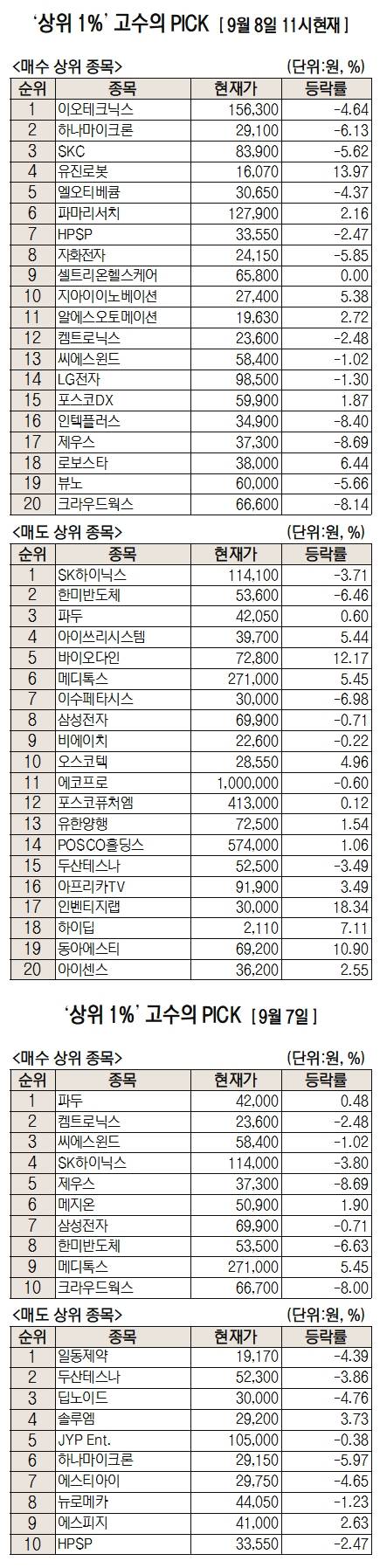 이날 미래에셋엠클럽에 따르면 미래에셋증권 주식 거래 고객 중 최근 1개월 간 투자수익률 상위 1%에 해당하는 '주식 초고수'들이 오전 11시까지 가장 많이 사들인 종목은 이오테크닉스로 집계됐다.